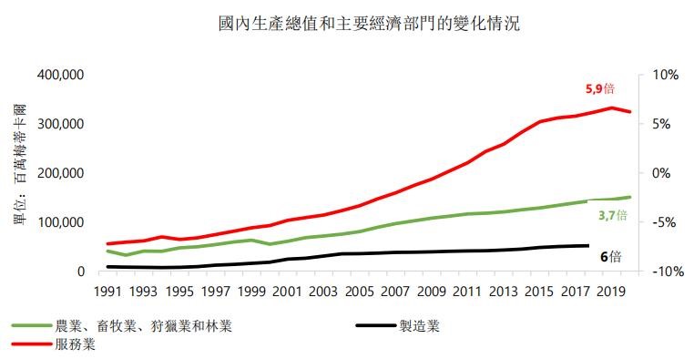 農業是僅次於服務業的國內生產總值的第二大貢獻者。2020年,服務業占國內生產總值的49%,農業佔23%。在過去的30年裏,莫桑比克在國家層面一直鼓勵對農產品加工的投資,將其作為進口替代的引擎,為平衡國家的貿易差額創造條件。
