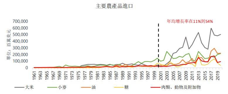 玉米、木薯、水稻和大豆等主要糧食作物,主要供國內消費;