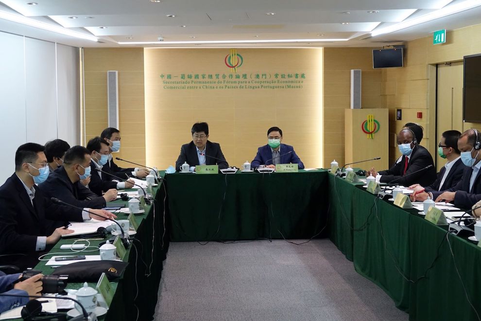 Attendees at the meeting included: Vice Governor of Zhejiang Province Mr Zhu Congjiu; Director of the Hong Kong and Macao Affairs Office of Zhejiang Province, Mr Jin Yonghui; Deputy Director General of the Department of Commerce of Zhejiang Province, Mr Zhang Qianjiang; Deputy Director of the Local Financial Regulatory Bureau of Zhejiang Province, Mr Sheng Yijun; Secretary-General of the Permanent Secretariat of Forum Macao, Mr Ji Xianzheng; Deputy Secretary-General of the Permanent Secretariat of Forum Macao (appointed by the People’s Republic of China), Mr Ding Tian; Deputy Secretary-General of the Permanent Secretariat of Forum Macao (appointed by the Portuguese-speaking Countries), Mr Paulo Jorge do Espírito Santo; Coordinator of the Executive Office of the Permanent Secretariat of Forum Macao, Mr He Meng; Coordinator of Forum Macao’s Liaison Office and Representative of Cabo Verde at the Permanent Secretariat of Forum Macao, Mr Nuno Furtado; Coordinator of the Support Office of the Permanent Secretariat of Forum Macao, Ms Teresa Mok; Representative of Angola at the Permanent Secretariat of Forum Macao, Mr Agostinho dos Santos; Representative of Guinea-Bissau at the Permanent Secretariat of Forum Macao, Mr Abdú Jaquité; Representative of Mozambique at the Permanent Secretariat of Forum Macao, Ms Francisca Reino; Representative of Portugal at the Permanent Secretariat of Forum Macao, Ms Maria João Bonifácio; Representative of São Tomé and Príncipe at the Permanent Secretariat of Forum Macao, Mr Gika Simão; and Representative of Timor-Leste at the Permanent Secretariat of Forum Macao, Mr Danilo Henriques.
