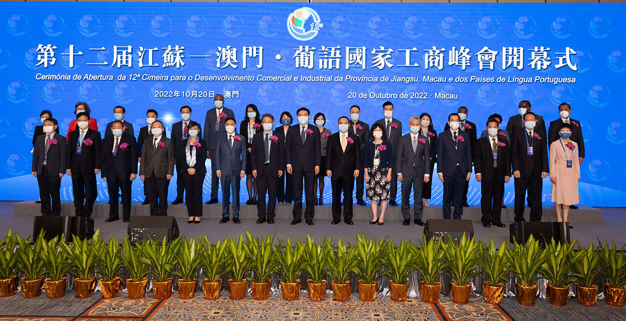 On the afternoon of October 20, the “12th Industrial and Commercial Summit between Jiangsu-Macao-Portuguese Speaking Countries” was held at The Venetian Macao. The Deputy Secretary-General of the Jiangsu Provincial Government, Huang Lan, Secretary-General of the Permanent Secretariat of Forum Macao, Ji Xianzheng, Executive Director of the Macao Trade and Investment Promotion Institute (IPIM), Sam Lei, and Deputy Secretary-General of the Permanent Secretariat of Forum Macao, Paulo Jorge do Espírito Santo, attended the activities and delivered speeches. More than 300 guests from Jiangsu, Macao and Portuguese-speaking countries (PSCs) participated in the Summit and representatives of PSCs to Forum Macao participated in the exchange activities.