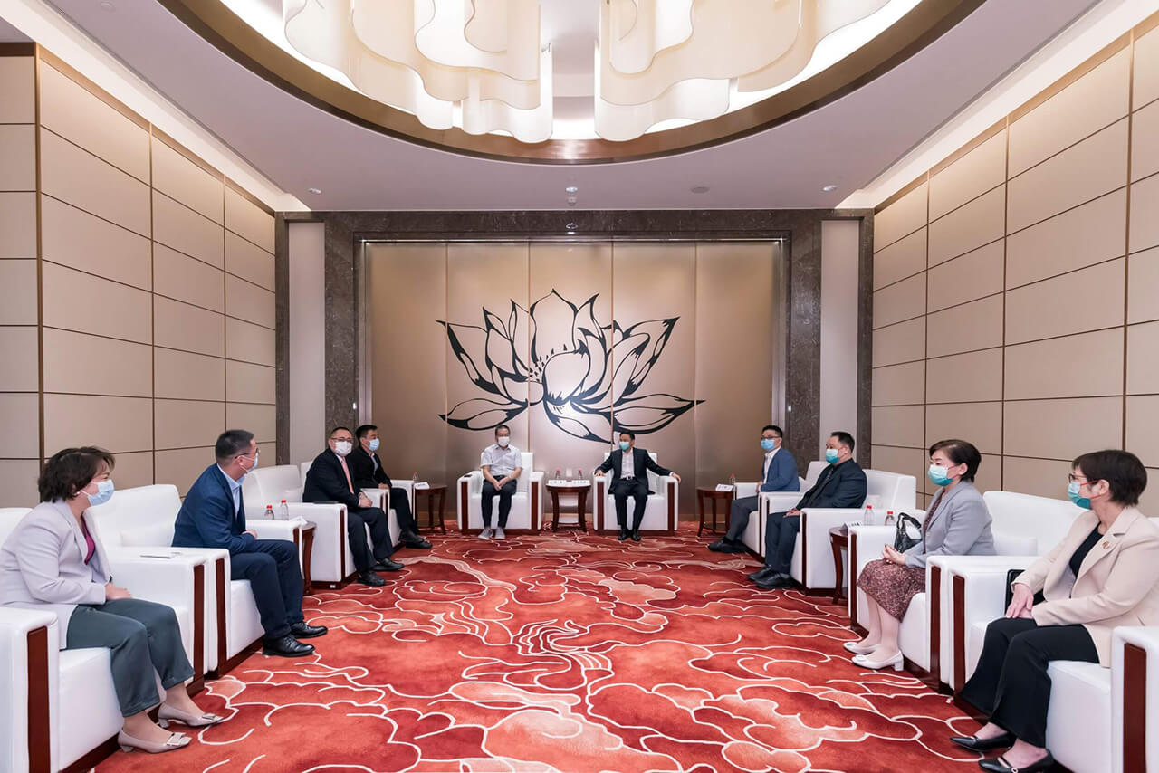From October 19 to 21, the economic and trade delegations from Mainland China that participated in the “27th Macao International Trade and Investment Fair” (27th MIF) in Macao were received by the Secretary-General of the Permanent Secretariat of Forum Macao, Ji Xianzheng. The delegations included those led by the Director of the Department of Commerce of Fujian Province, Huang Heming; Director of the Department of Commerce of Guizhou Province, Ma Lei; President of the China Council for the Promotion of International Trade (CCPIT) Jilin Provincial Committee, Li Qingchen; Deputy Director of the Department of Commerce of Shandong Province, Lu Wei; Deputy Director of the Department of Commerce of Hunan Province, Zhou Yue; Executive Deputy Director of the Administrative Committee of the China-SCO Local Economic and Trade Cooperation Demonstration Area (SCODA), Li Gang; President of the China Chamber of Commerce for Import and Export of Medicines and Health Products (CCCMHPIE), Zhou Hui; and Chairman of the Macao Technological Innovation Association, Jin Weigang.