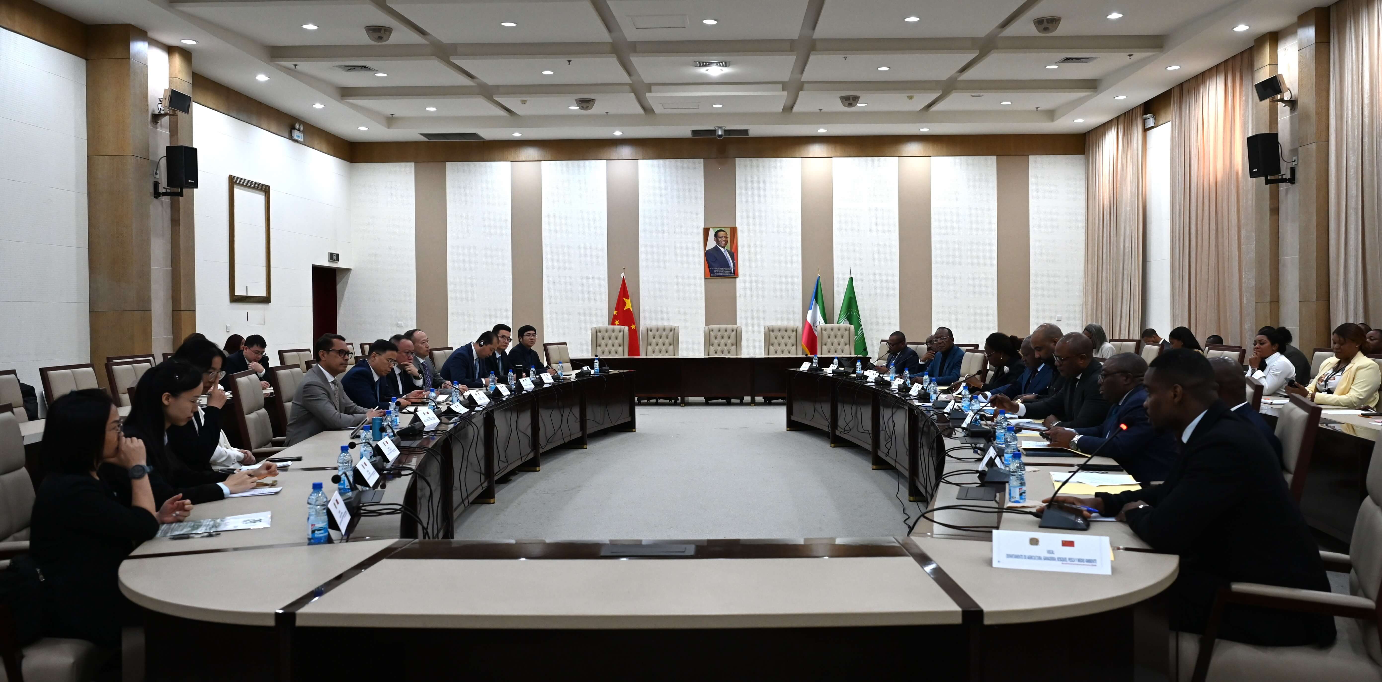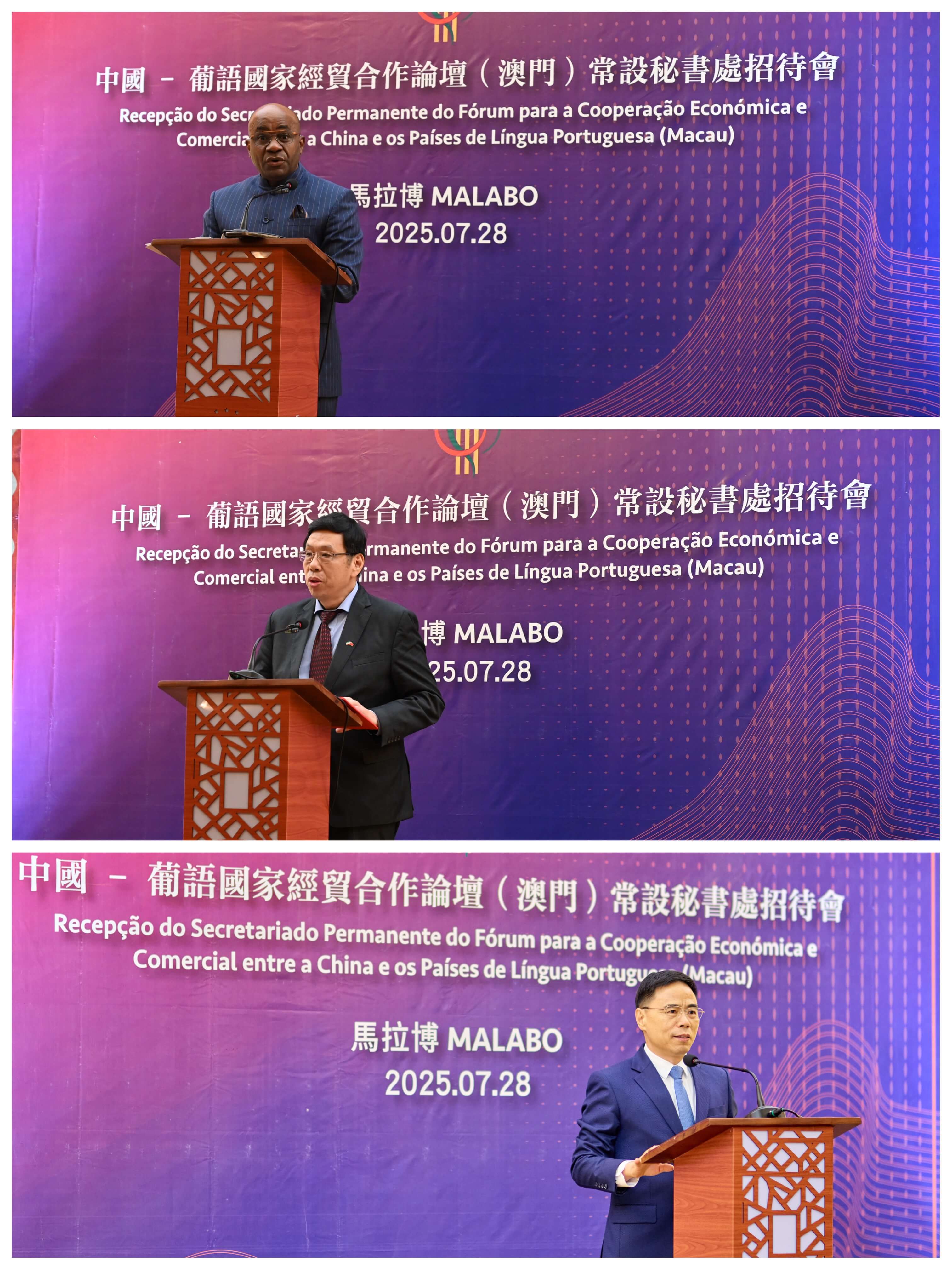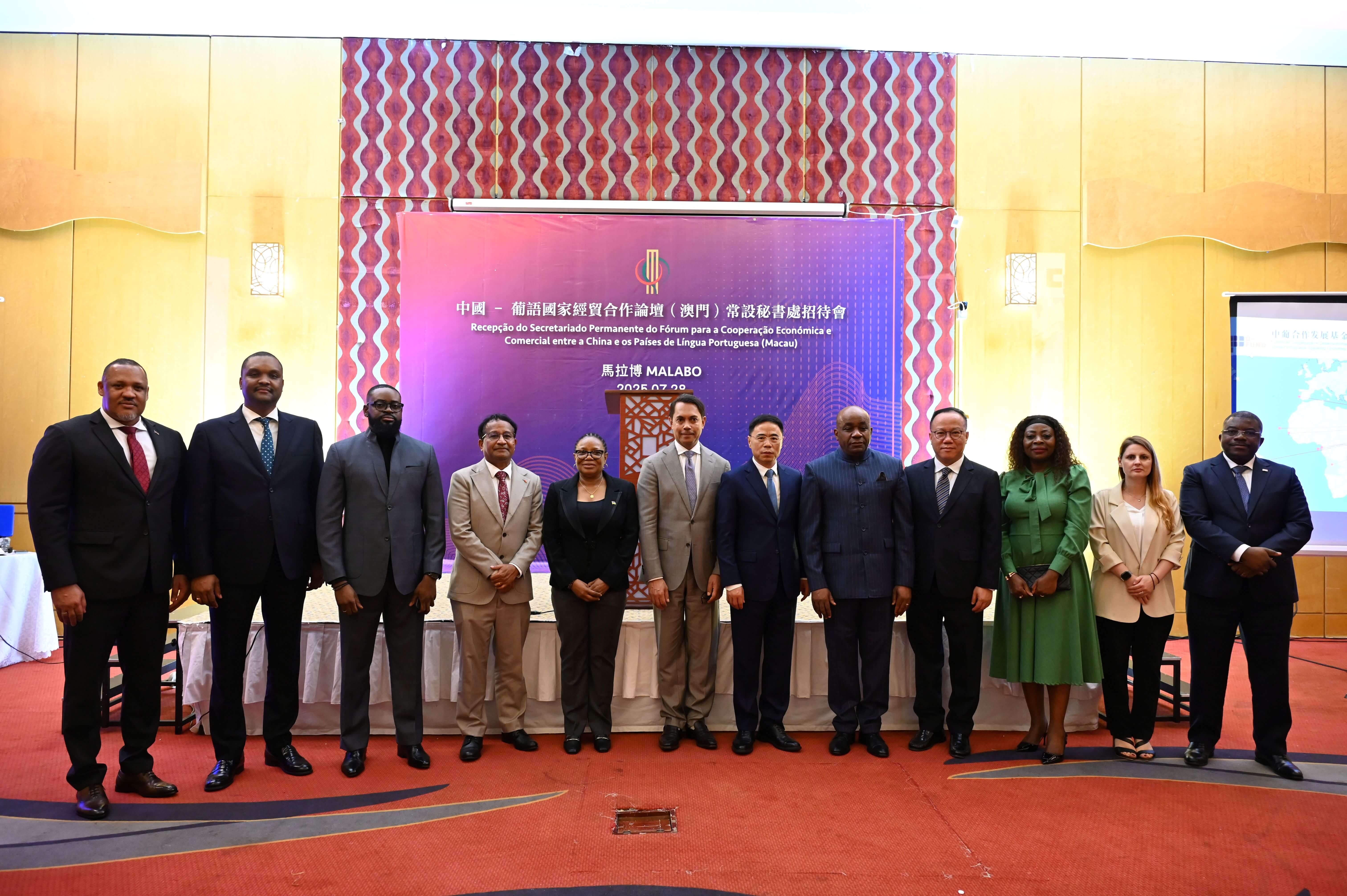 The delegation from the Permanent Secretariat of Forum for Economic and Trade Co-operation between China and Portuguese-speaking Countries (Macao), led by Secretary-General Ji Xianzheng, visited Equatorial Guinea from July 27 to 29. The delegation attended the “Entrepreneurs Meeting for Commercial and Economic Co-operation between China and Portuguese-speaking Countries – Malabo 2025” and hosted a reception. During the visit, the Secretary-General paid courtesy calls on Wang Wengang, the Chinese Ambassador to Equatorial Guinea, and Simeón Oyono Esono Angue, the Minister of State for Foreign Affairs and International Cooperation and Diaspora of Equatorial Guinea. He also met with Honorato Evita Oma, the Minister of Transport, Telecommunications and Artificial Intelligence Systems of Equatorial Guinea, and co-chaired an inter-departmental working exchange meeting with Matías Nguema Mba, the Secretary-General of the Ministry of Foreign Affairs of Equatorial Guinea.