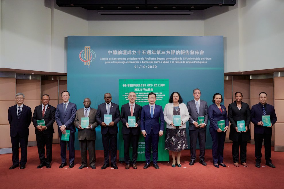 O Relatório da Avaliação Externa por ocasião do 15.º aniversário do Fórum para a Cooperação Económica e Comercial entre a China e os Países de Língua Portuguesa, encomendado pelo Secretariado Permanente do Fórum de Macau e pelo Governo da RAEM e realizado pelo Instituto da Economia e Política Mundial da Academia de Ciências Sociais da China, foi oficialmente lançado no dia 21 de Outubro, em Macau. O Secretário-Geral Adjunto do Secretariado Permanente do Fórum de Macau, Dr. Ding Tian, presidiu a Cerimónia de Lançamento, que contou com a participação do Director-Geral do Departamento dos Assuntos de Taiwan, Hong Kong e Macau do Ministério do Comércio, Dr. Sun Tong, do corpo diplomático dos Países de Língua Portuguesa na China, do representante do Governo da RAEM e do Chefe da equipa de projecto e Director do Instituto da Economia e Política Mundial da Academia de Ciências Sociais da China, Dr. Zhang Yuyan, entre outros convidados.