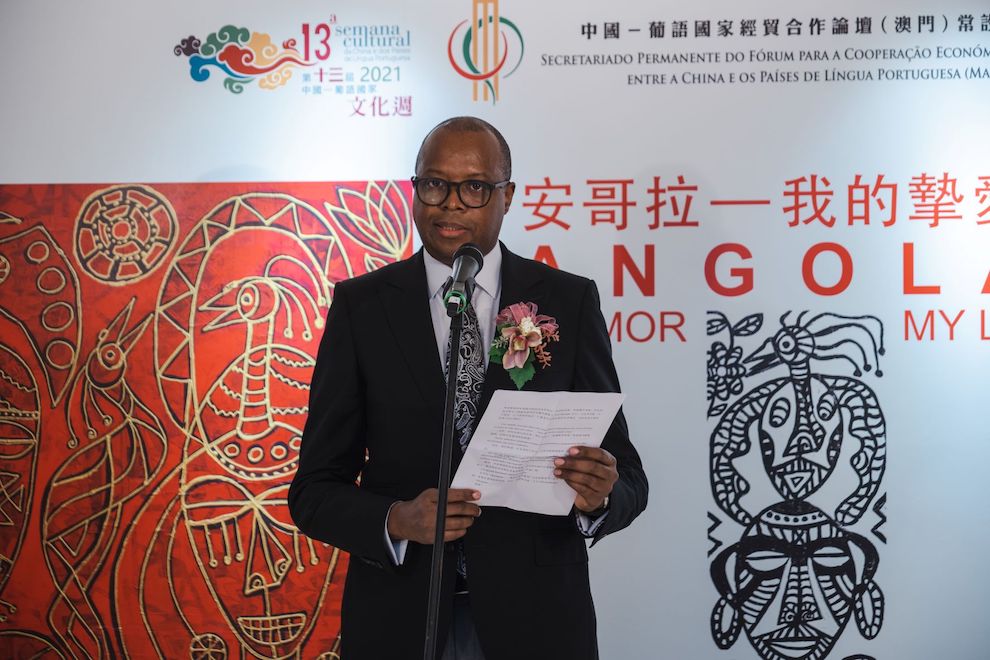 People attending the ceremony included: Deputy Secretary-General of the Permanent Secretariat of the Forum for Economic and Trade Co-operation between China and Portuguese-speaking Countries (Macao), Mr Paulo Jorge do Espírito Santo; Consul-General of Angola in the Macao SAR, Mr Eduardo Velasco Galiano; Consul-General of Mozambique in the Macao SAR, Mr Rafael Custódio Marques; Coordinator of the Support Office of the Permanent Secretariat of Forum Macao, Ms Teresa Mok; and President of the Angola-Macau Association, Mr Alexandre Correia da Silva. Angolan artist Mr Álvaro Macieira took part in the event via videoconference.