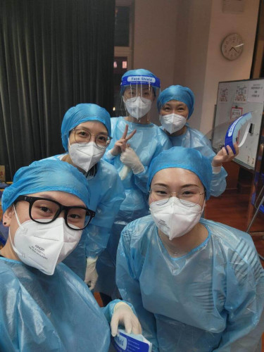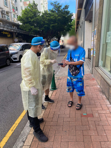 第一次參與前線支援工作的同事表示,參加此次支援工作對她來說是個不小的考驗和挑戰。面對酷熱的天氣和密不透風的隔離衣,第一次親身體驗到前線人員的辛苦。在炎熱的酷暑天氣下,看似薄薄的防護衣卻使大家一會兒工夫就汗流浹背。儘管工作疲累忙碌,但市民們一聲聲 “辛苦了”的問候,鼓勵著她和其他前線人員繼續堅守崗位。