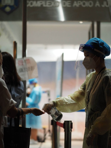 新冠疫情的來襲,讓澳門正經歷前所未有的挑戰。為支援澳門特區政府各項防疫、抗疫工作,中國與葡語國家經貿合作論壇常設秘書處輔助辦公室莫苑梨主任統籌輔助辦各同事,於6月下旬籌組防疫支援工作小組,參與支援核酸檢測站、協助超級市場人流管理以及安排車輛到指定地區巡邏宣傳防疫措施等工作,輔助辦組織了約7成人員合共131人次參與前線工作。相關防疫支援工作得到了秘書處的大力支持。