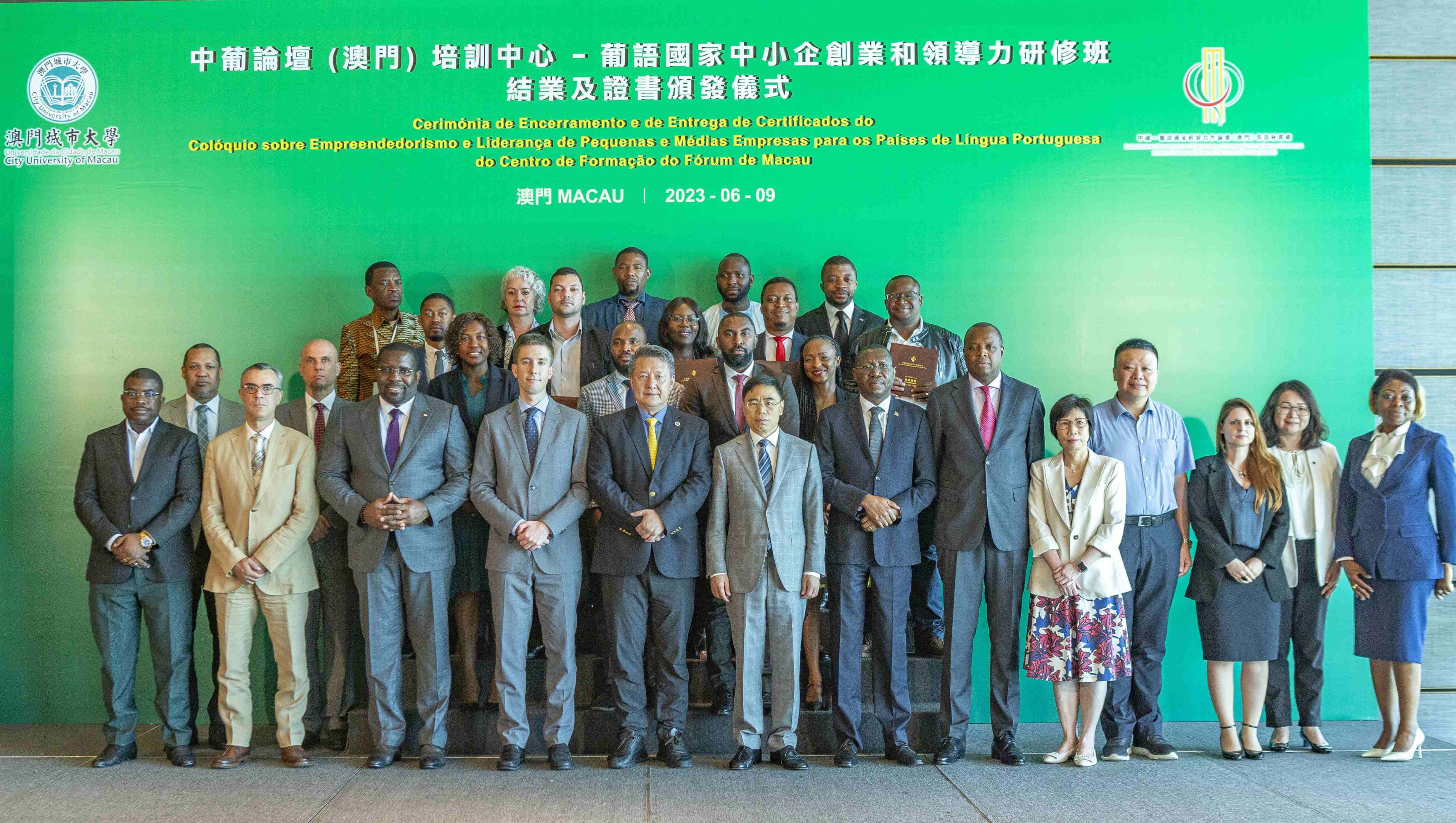 Organized by the Training Center of Forum Macao, supported by the City University of Macau, the “Colloquium on Entrepreneurship and Leadership of SMEs for Portuguese-speaking Countries” was concluded with its closing and certificate award ceremony held on June 9 at the Macau Tower Convention & Entertainment Center.