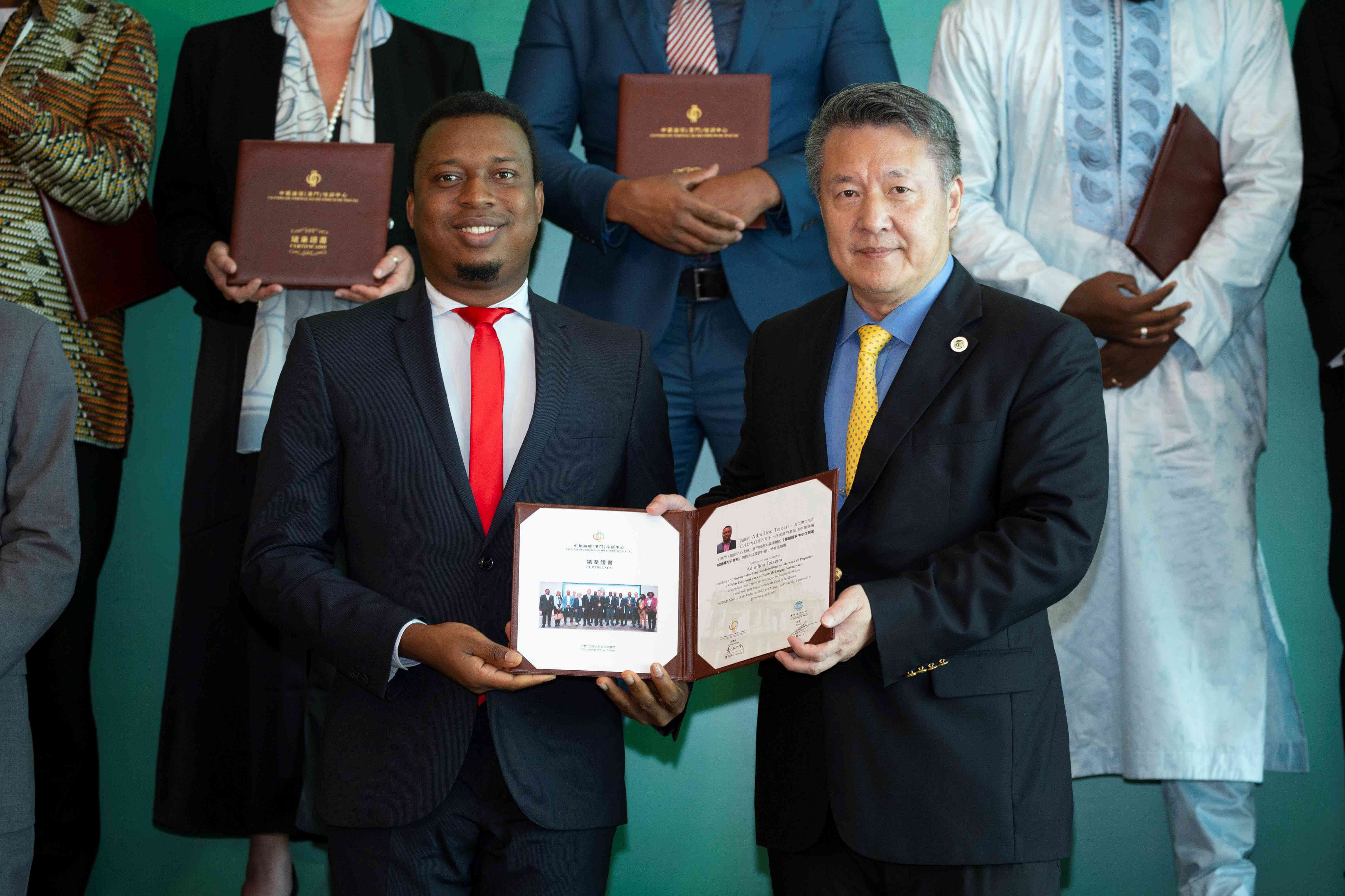 Guests at the ceremony included: the Secretary-General of the Permanent Secretariat of Forum Macao, Mr. Ji Xianzheng; the Rector of the City University of Macau, Professor Liu Jun; the Consul General of Mozambique in Macao, Mr. Rafael Custodio Marques; the Vice-Consul for Commercial Affairs and Investment of Portugal in Macao and Hong Kong (Delegate of AICEP Macau), Mr. Bernardo Pinho; the Deputy Secretary-General of the Forum Macao, Mr. Paulo Jorge Rodrigues do Espírito Santo; the Director of the Trade Office of the Economic Affairs Department of the Liaison Office of the Central People’s Government in the Macao SAR, Mr. Zhao Xin; and representatives of Portuguese-speaking Countries at Forum Macao.