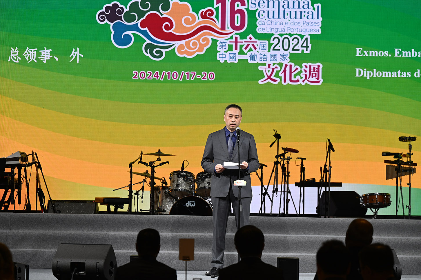 由中葡论坛(澳门)常设秘书处主办的“第十六届中国─葡语国家文化周”10月17日傍晚在澳门渔人码头励骏广场举行开幕式。
