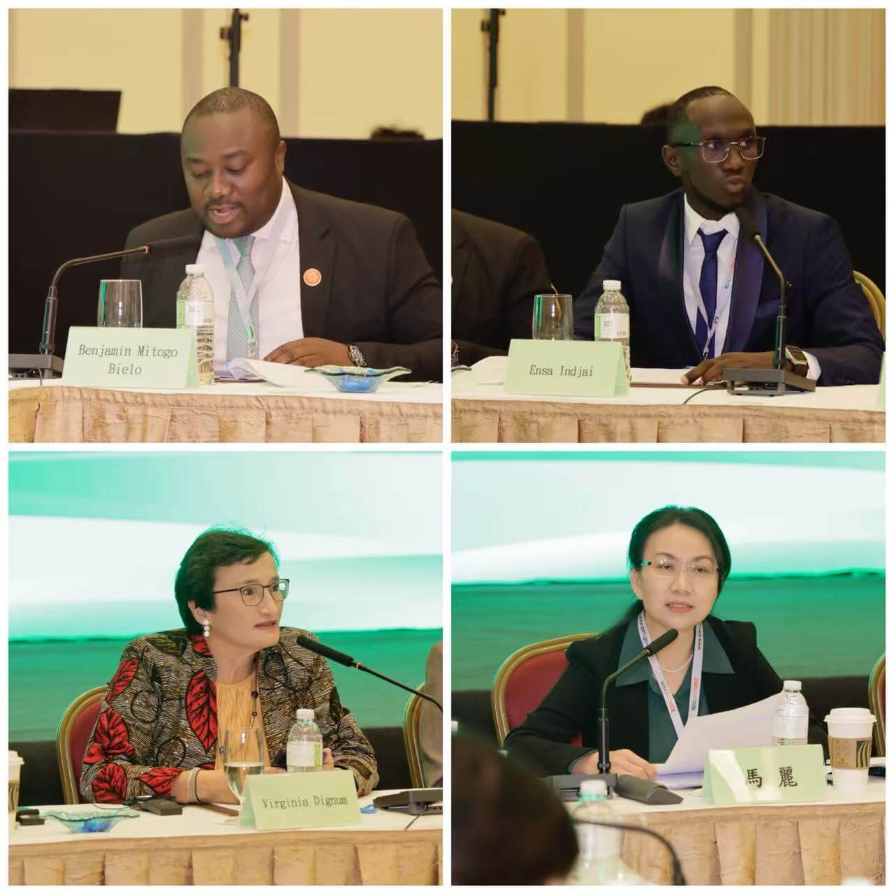 圆桌讨论环节,几内亚比绍电信与数字经济部电信与基础设施司司长恩萨·因贾伊、赤道几内亚商会主席本杰明·米托戈·比埃洛、联合国人工智慧高级咨询机构成员和瓦伦堡基金会高级顾问弗吉尼亚·迪格纳教授、澳门管理学院院长唐继宗、中非发展基金有限公司总裁马丽、徐州智博机车有限公司总经理张辉先后发言,围绕中小企业数字化转型的政策引导与实践路径展开深入对话,为数字经济背景下更好促进中葡中小企业发展提供思路。同时,参加中葡论坛(澳门)培训中心数字经济研修班及中小企业能力提升研修班的中国和葡语国家官员也参与了此次圆桌会,进一步促进了知识分享与互动。