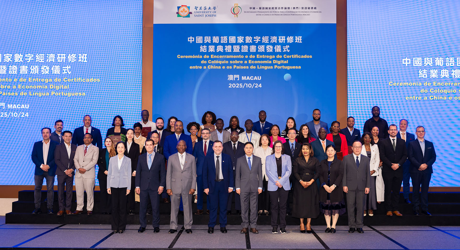 10月24日,由中國—葡語國家經貿合作論壇(澳門)常設秘書處主辦的“中國—葡語國家數字經濟研修班”在澳門銀河國際會議中心舉行結業禮。該研修班自10月13日至27日舉辦,有19名來自中國內地及九個葡語國家的相關領域官員、技術員和機構高管等代表參加。中葡論壇(澳門)常設秘書處秘書長季先峥、聖若瑟大學副校長Alexandre Lobo、研修班輪值班長Ensa Indjai等出席典禮並致辭。