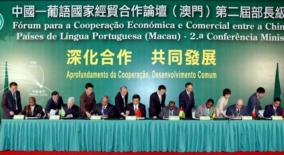 Os Ministros responsáveis pelas áreas Económica e Comercial da República Popular da China e dos seguintes Países de Língua Portuguesa, República de Angola, República Federativa do Brasil, República de Cabo Verde, República da Guiné Bissau, República de Moçambique, República Portuguesa e República Democrática de Timor-Leste, reuniram-se de 24 a 25 de Setembro de 2006, na Segunda Conferência Ministerial do Fórum para a Cooperação Económica e Comercial entre a China e os Países de Língua Portuguesa (Macau), adiante designado por Fórum de Macau, na Região Administrativa Especial de Macau da República Popular da China, adiante designada por Macau.