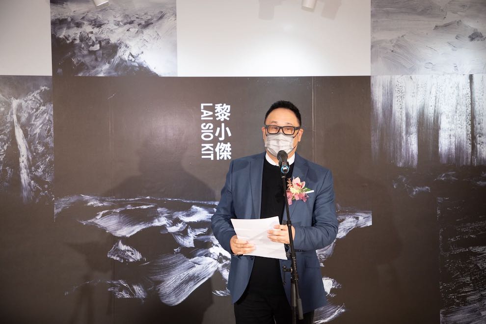 Acrescentou que a presente exposição do artista de Macau, Lai Sio Kit, convidar-nos-á, surpreendentemente, a explorar os interstícios mais profundos da universalidade de Macau. Artista telúrico, carregado das cores monocromáticas de branco e preto, que são paradoxalmente luminosas em casamento a buliçosas cascatas em que se revisitam as águas primaveris. Na pintura de Lai Sio Kit regressa-se mesmo para ficar aos elementos mais primários e prístinos em que se decide a génese do Ser, do Pensar e do Fazer.