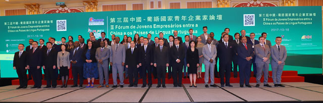 Realizou-se, na parte da manhã do dia 18 de Outubro, no Salão Florence do Venetian Macao-Resort-Hotel, o “III Fórum de Jovens Empresários entre a China e os Países de Língua Portuguesa” com a organização conjunta do Secretariado Permanente do Fórum para a Cooperação Económica e Comercial entre a China e os Países de Língua Portuguesa, do Instituto de Promoção do Comércio e do Investimento de Macau, da Direcção dos Serviços de Economia, da Comissão de Juventude da Associação Comercial de Macau e da Associação de Jovens Empresários Portugual-China, bem como da Federação Sino Países de Língua Portuguesa e Espanhola. Na mesma ocasião, realiza-se ainda a cerimónia de descerramento da placa do “Centro de Intercâmbio de Inovação e Empreendedorismo para Jovens da China e dos Países de Língua Portuguesa”.