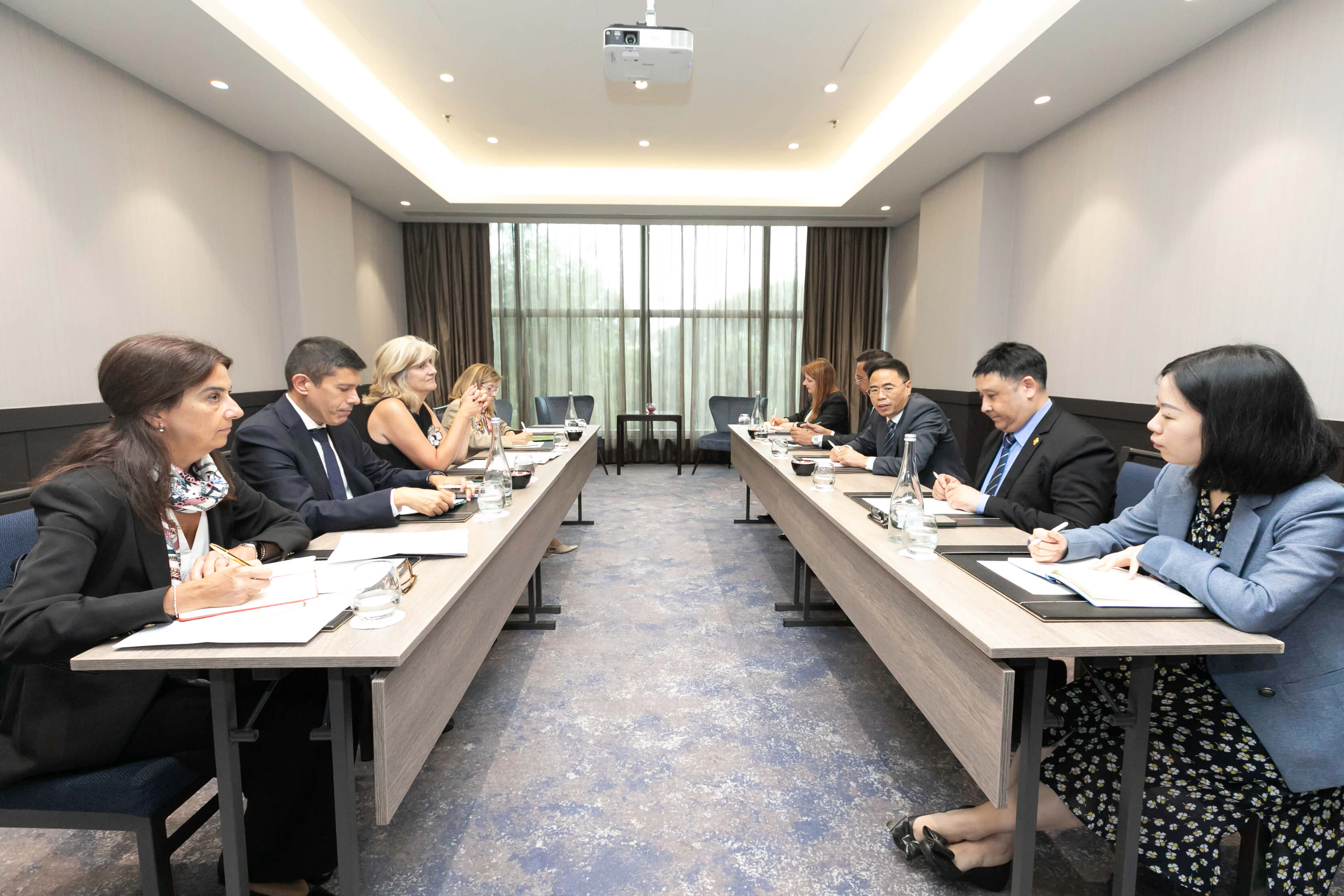 O Secretário-Geral Adjunto, Dr. Danilo Henriques, o Secretário-Geral Adjunto, Dr. Casimiro de Jesus Pinto, a Coordenadora do Gabinete de Administração, Dra. Li Xiaohui, a Delegada de Portugal, Dra. Márcia Guerreiro, e a Assessora do Gabinete de Administração, Dra. Li Jiabei, bem como os representantes do Ministério do Comércio da China e das empresas do Interior da China que acompanhavam a delegação participaram nas várias actividades.