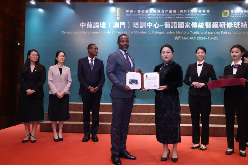 A Cerimónia de Encerramento e de Entrega de Certificados do Colóquio sobre a Cooperação no domínio de Medicina Tradicional para os Países de Língua Portuguesa teve lugar no dia 25 de Outubro de 2024, em MGM Macau, sendo o Colóquio organizado pelo Secretariado Permanente do Fórum para a Cooperação Económica e Comercial entre a China e os Países de Língua Portuguesa (Macau) e realizado pelo Parque Científico e Industrial de Medicina Tradicional Chinesa para a Cooperação entre Guangdong-Macau.