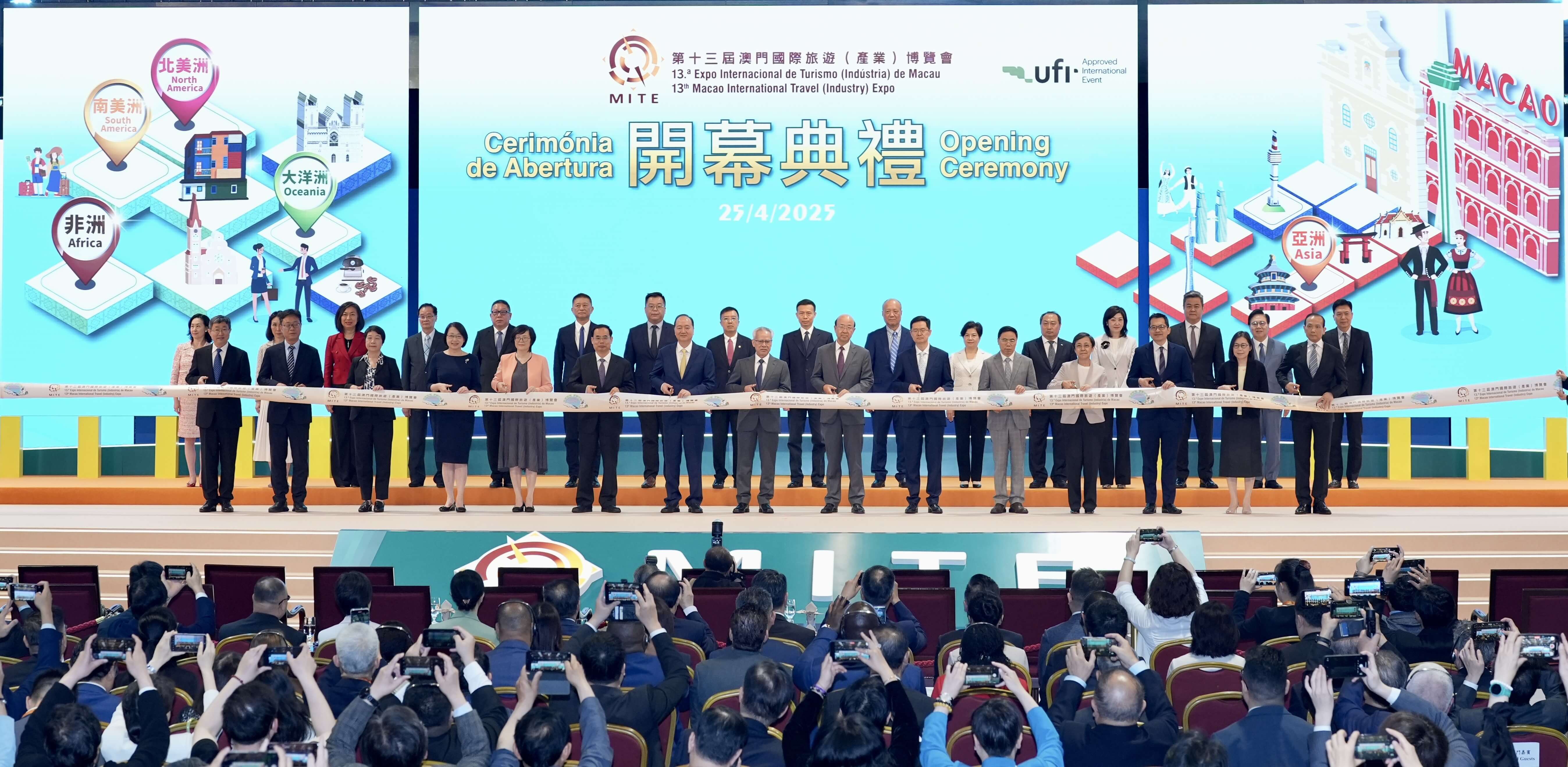 Realizou-se, no dia 25 de Abril de manhã, a cerimónia de abertura da 13ª edição da Expo Internacional de Turismo (Indústria) de Macau. Os membros do Secretariado Permanente do Fórum de Macau liderados pelo Secretário-Geral, Dr. Ji Xianzheng e os participantes do Colóquio sobre a Cooperação no Sector de Turismo entre a China e os Países de Língua Portuguesa estiveram na cerimónia e visitaram conjuntamente o Pavilhão dos Países de Língua Portuguesa.