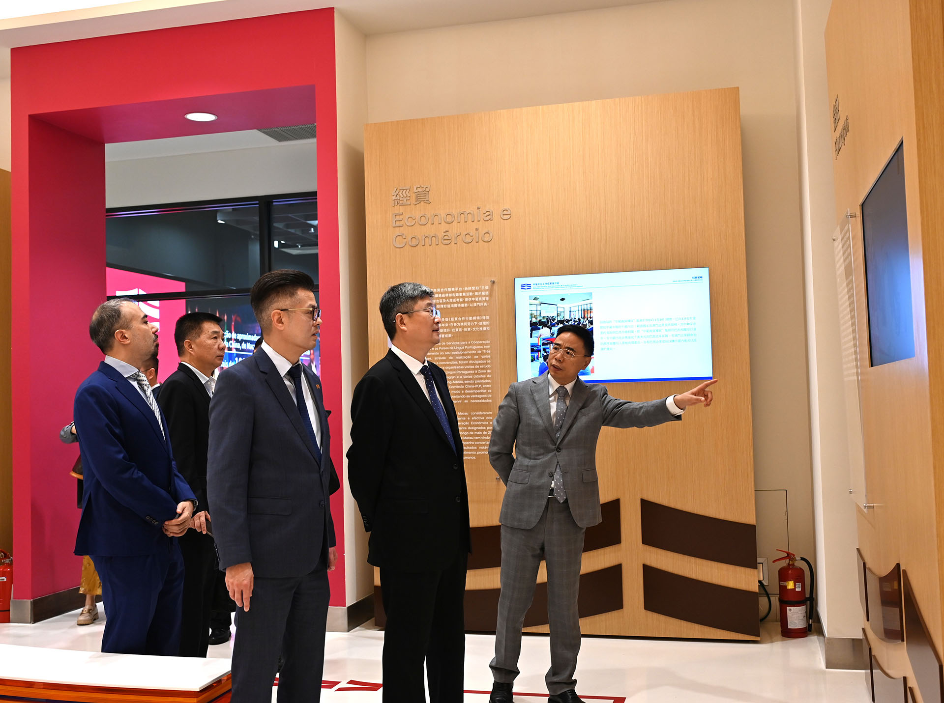 Findo o encontro, o Vice-Governador Sun Yong e a sua delegação seguiram para uma visita ao Pavilhão de Exposição da Plataforma de Serviços para a Cooperação Comercial entre a China e os Países de Língua Portuguesa.