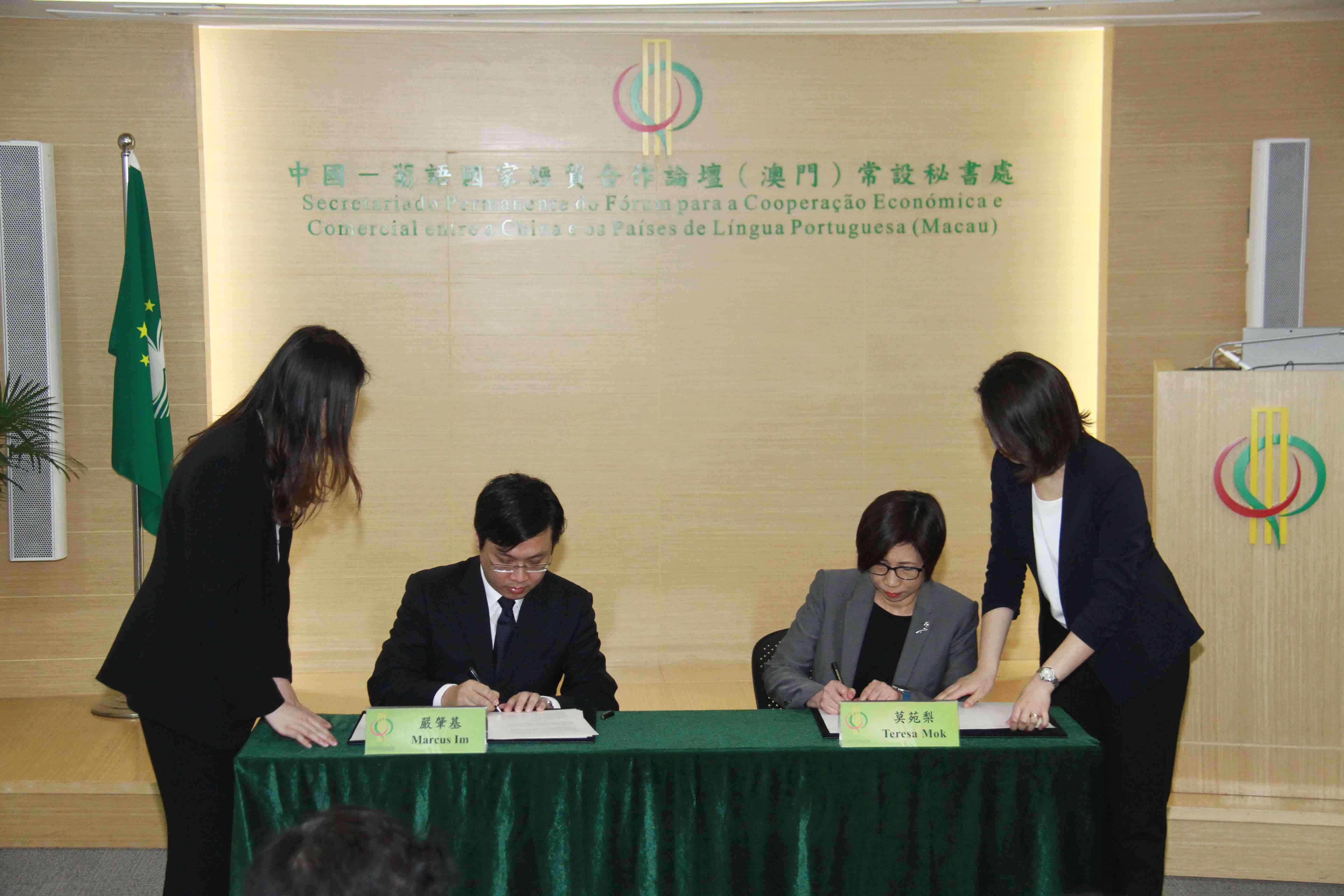 Celebrou-se no dia 21 de Março, entre o Gabinete de Apoio do Secretariado Permanente do Fórum para a Cooperação Económica e Comercial entre a China e os Países de Língua Portuguesa (GASPF), representado pela sua Coordenadora, Dra. Teresa Mok, e o Instituto Politécnico de Macau (IPM), representado pelo seu Presidente, Prof. Dr. Marcus Im Sio Kei, um Acordo de Cooperação sobre o Uso do “Sistema Auxiliar de Tradução Chinês-Português/Português-Chinês de Documentos Oficiais”. Este acordo é celebrado entre as Partes prevendo-se que essa cooperação irá dar um novo impulso aos trabalhos da construção da Plataforma de Serviços para a Cooperação Comercial entre a China e os Países de Língua Portuguesa.