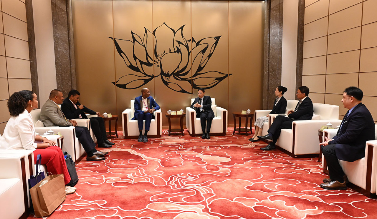 O Secretário-Geral do Secretariado Permanente do Fórum de Macau, Ji Xianzheng, dirigiu calorosas boas-vindas à comitiva liderada pelo Ministro Victor Coutinho e fez uma breve apresentação sobre o Fórum de Macau e o funcionamento do Secretariado Permanente. O responsável apresentou também o ponto de situação sobre a implementação do Plano de Acção para a Cooperação Económica e Comercial (2024-2027) assinado na 6.ª Conferência Ministerial do Fórum de Macau.