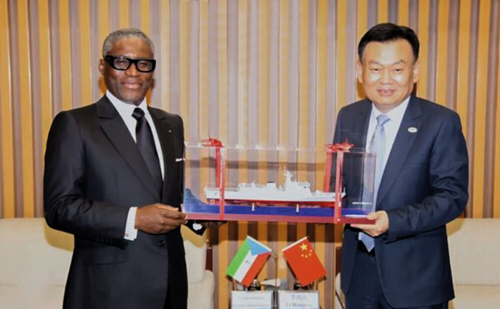 今年7月,在北京訪問的赤道幾內亞副總統特奧多羅・恩奎馬・奧比昂・曼格兩度到訪中國船舶工業貿易有限公司。 副總統表示有興趣在中國購買一艘護衛艦用於該國的領海防衛。