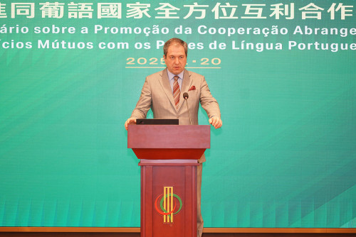 澳門特別行政區政府經濟財政司司長代表余雨生致辭時強調,特區政府“將積極按照習近平主席去年訪澳時作出的指示及中葡論壇第六屆部長級會議上通過的《經貿合作行動綱領(2024-2027)》的方針,全力推動中葡平台建設”。