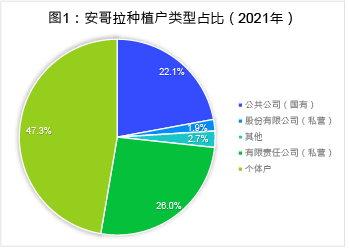 安哥拉拥有约5800万公顷的可耕地,目前已开发利用的约占5.7%。从种植户的规模来看,安哥拉最大的种植户群体是小于5公顷的个体户小农(47.3%),其次是以有限责任公司形式存在的中小型农场(26%),大于100公顷的大型商业农场往往由公共企业(国有企业)拥有,占农场总规模的22.1%。