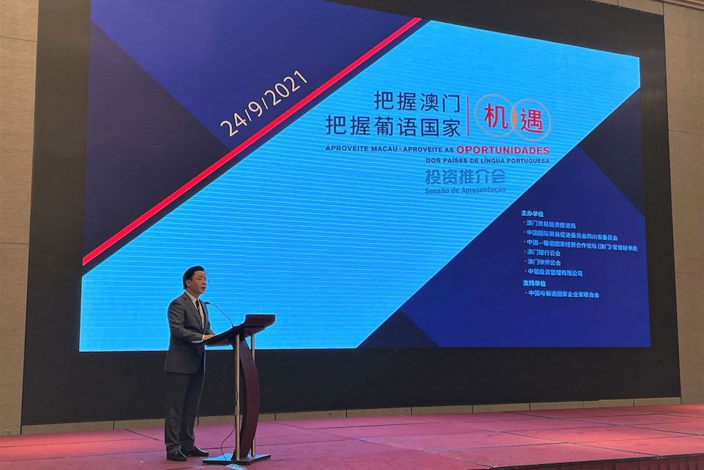 9月24日,中葡论坛常设秘书处与澳门贸易投资促进局及中国国际贸易促进委员会四川省委员会等共同举办“把握澳门,把握葡语国家机遇投资推介会”。常设秘书处副秘书长丁恬、澳门贸促局执委余雨生及中国贸促会四川省委会副会长雷学杰出席活动并致辞。