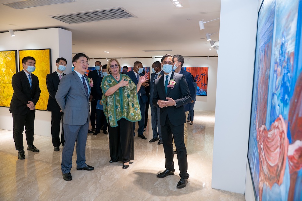 由中葡论坛(澳门)常设秘书处主办的“第十三届中国—葡语国家文化周 — 葡光十色”系列展览之东帝汶艺术家Ibu Bere “记忆与存在”作品展于11月19日下午6时30分在中国与葡语国家商贸合作服务平台综合体举行开幕式。