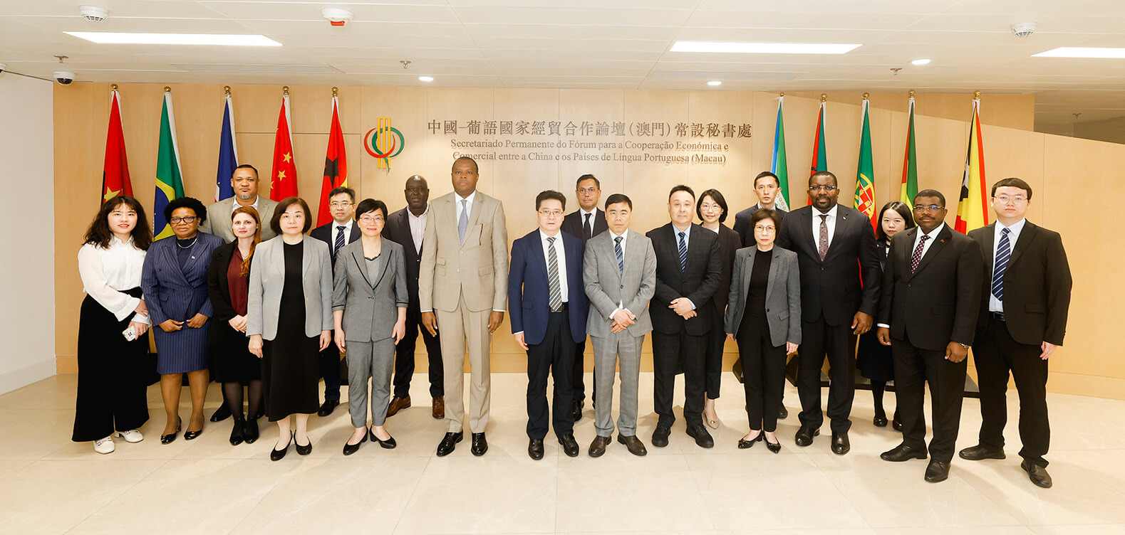 3月22日,中葡论坛(澳门)常设秘书处季先峥秘书长会见来访的广东省商务厅厅长张劲松一行。双方就充分利用澳门作为中葡合作平台的纽带作用,进一步加强广东与葡语国家的交流与合作,推动粤港澳大湾区与葡语国家的投资贸易发展进行了交流。参与会面的还有:常设秘书处副秘书长赞东、黄伟麟,行政办公室主任李晓晖、联络办公室主任施蒙格、辅助办公室主任莫苑梨、安哥拉派驻代表安诚佑、佛得角派驻代表米格尔、几内亚比绍派驻代表夏德、莫桑比克派驻代表范诗雅、葡萄牙派驻代表顾美思及东帝汶派驻代表东晨光等。