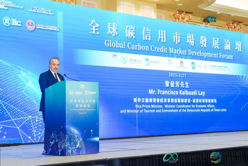 “全球碳信用市场发展论坛”于2025MIECF期间举办。常设秘书处作为活动支持单位,协助组委会邀请东帝汶副总理兼经济事务统筹部部长、旅游和环境部部长黎发芳来澳参会。该论坛旨在展示最新低碳成果,分享全球碳市场的最新技术进展与政策创新,推动市场机制优化,进一步加强澳门在全球气候变化领域的协作。常设秘书处谢颖副秘书长出席并见证签约仪式。