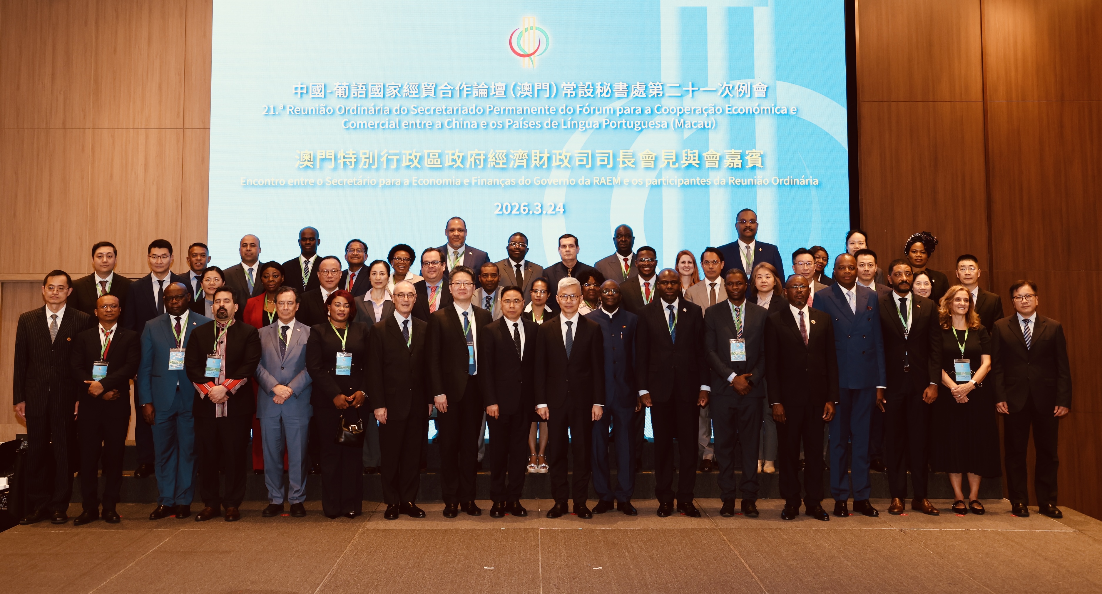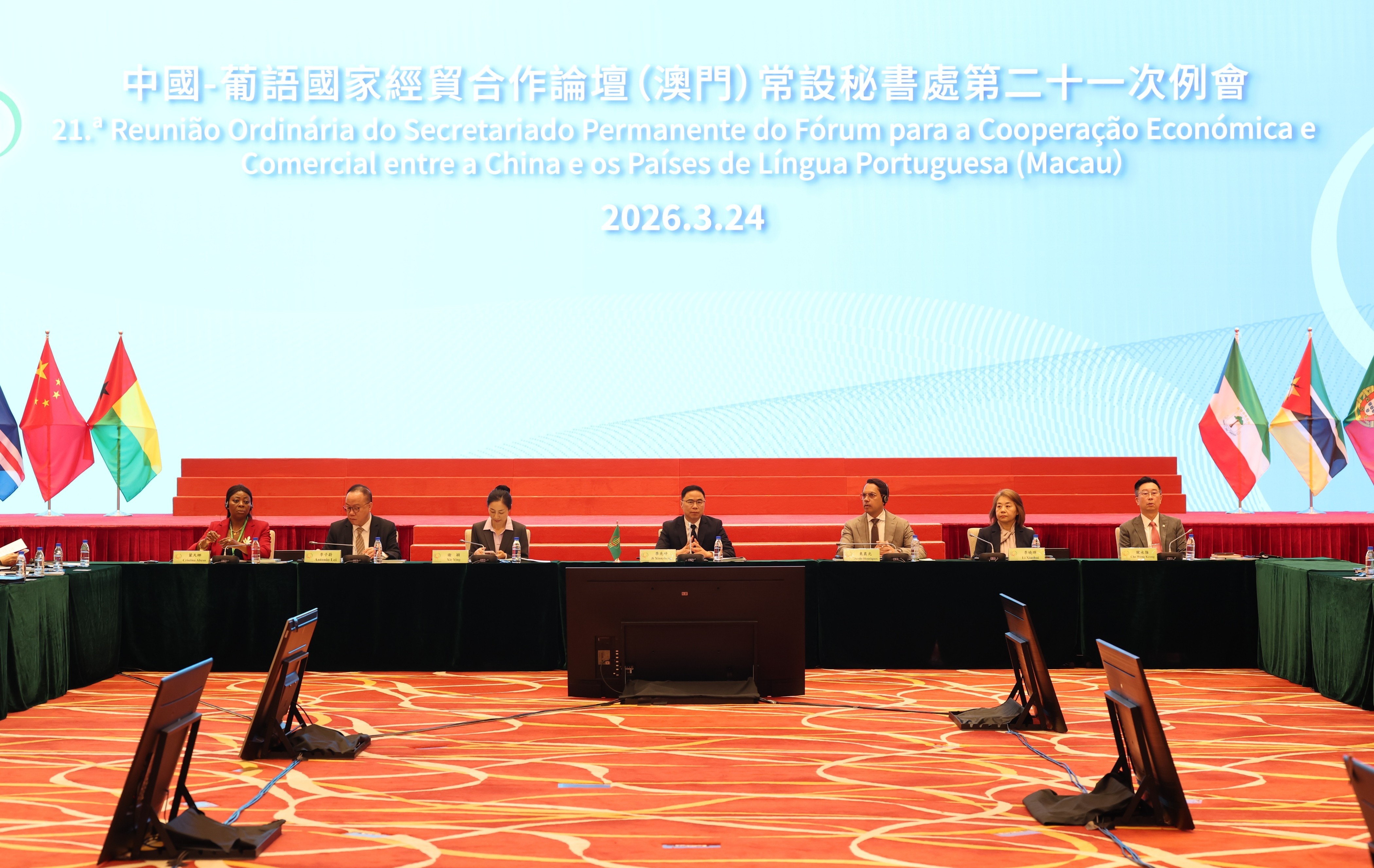 3月24日,中国—葡语国家经贸合作论坛(澳门)常设秘书处在澳门召开第二十一次例会。中国商务部、澳门中联办、外交部驻澳门特派员公署和澳门特区政府代表,以及葡语国家驻华大使、葡语国家论坛事务联络员和中葡论坛(澳门)常设秘书处成员等出席。会议由季先峥秘书长主持,交流了各方落实《经贸合作行动纲领(2024-2027)》情况,总结了秘书处2025年工作,讨论通过了秘书处2026年工作计划。