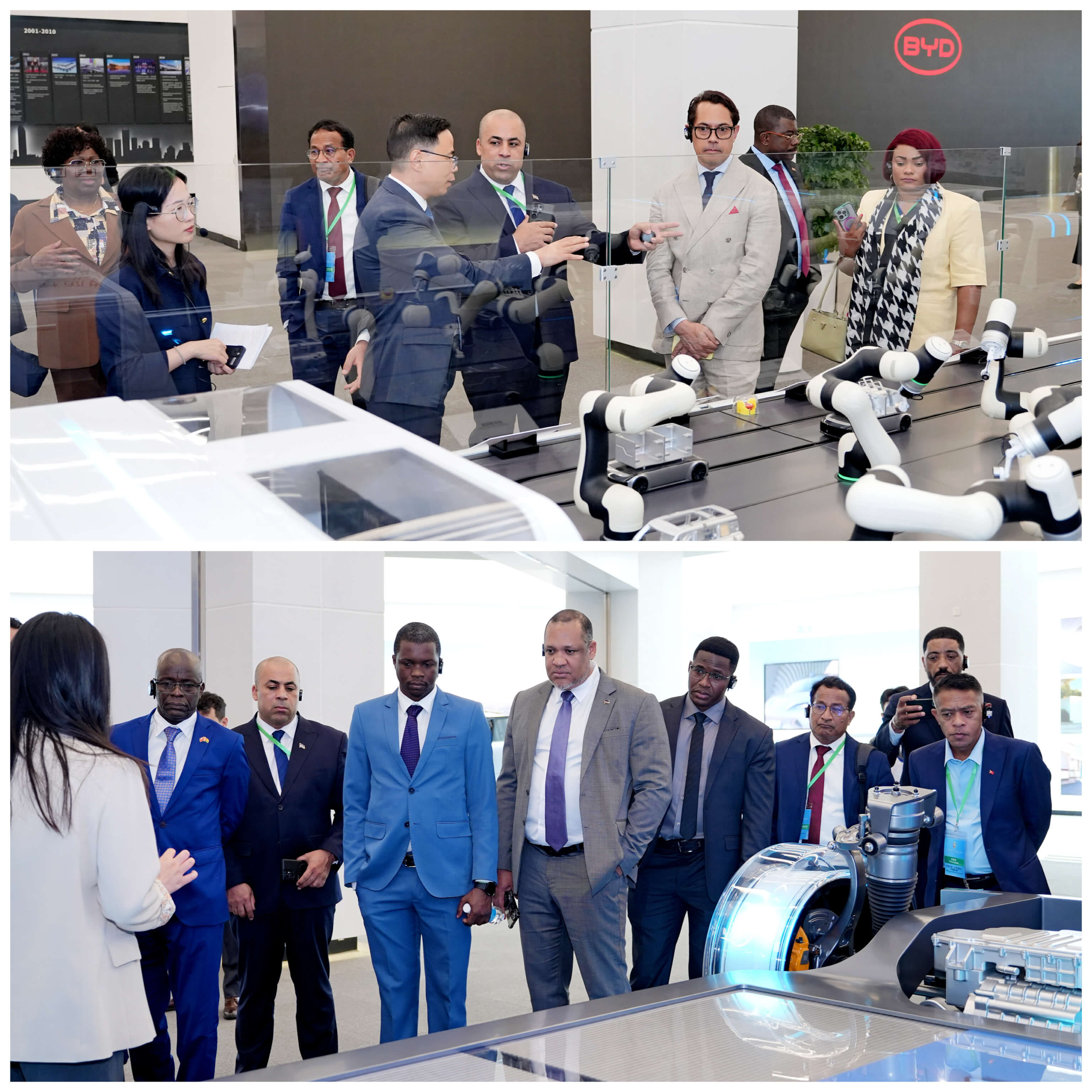 25日上午,代表团参观了深圳工业展览馆,了解深圳工业发展历程、工业成果和特色的工业文化体系。下午,参观比亚迪坪山工业园,深入了解比亚迪新能源汽车的研发、制造,以及将电动汽车产业链延伸到轨道交通领域的跨越式发展历程。随后,前往深圳海吉星国际农产品物流园,参观农特产交易区、检测实验室和智慧管理中心等,了解科技赋能农产品流通、打造绿色健康食品产业链。