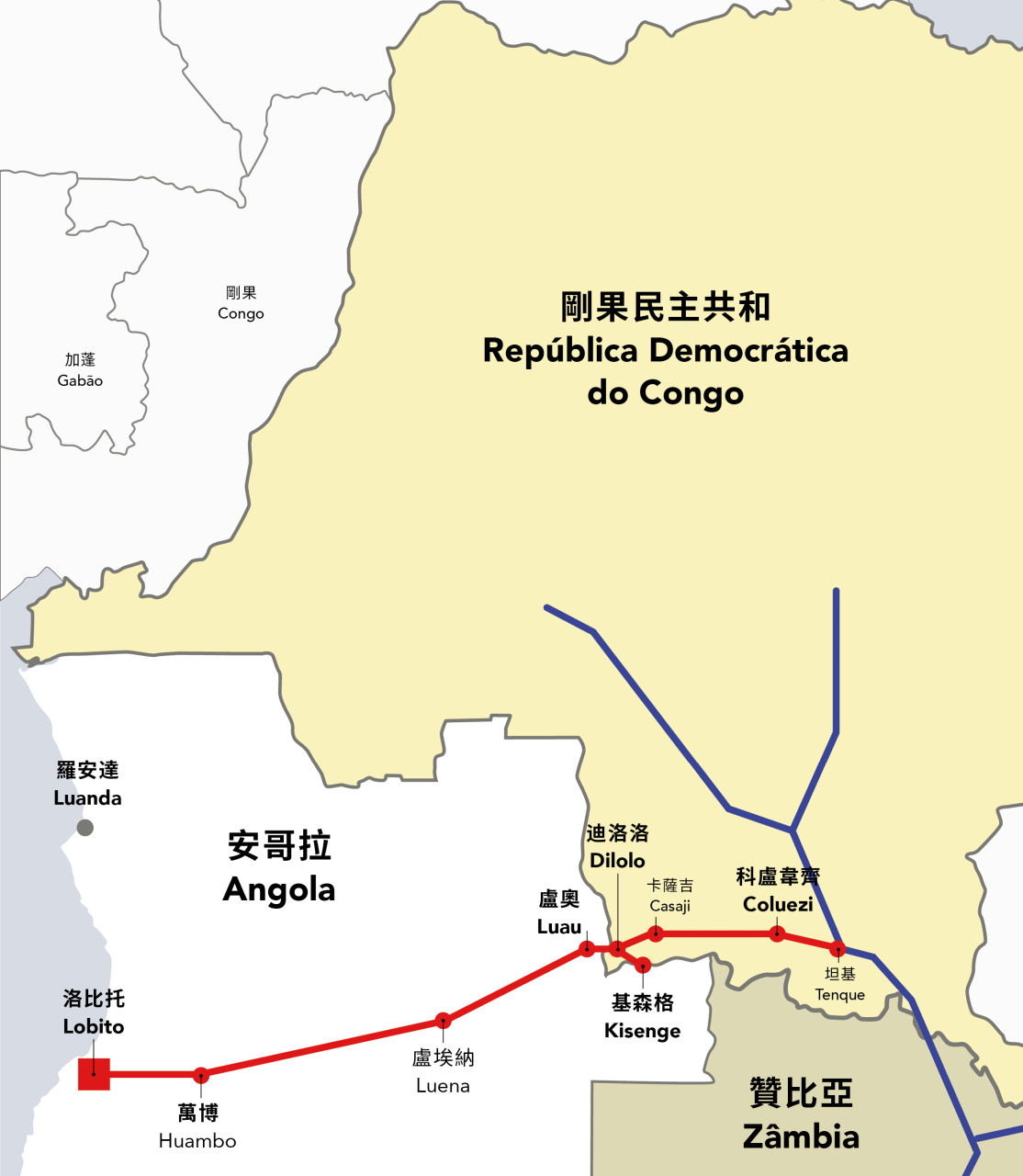位于安哥拉的洛比托经济走廊由洛比托港和本格拉铁路组成,总长度超过1300公里,是出口铜、钴等矿产资源至赞比亚或刚果民主共和国等国家的最快路线。发展洛比托经济走廊涉及对洛比托-本格拉-卢奥铁路线的额外投资,其中包括与刚果民主共和国边境铁路的整合连通,以及建设一条通往赞比亚的铁路支线。安哥拉政府早前已投资约19亿美元重建铁路,旨在与刚果民主共和国连通,将有望收回成本。