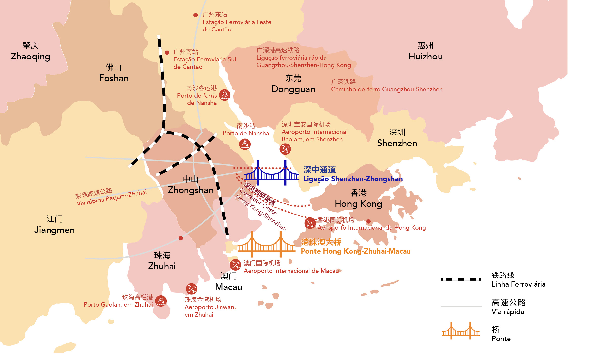 大桥连接澳门丶香港和珠三角经济区,包括深圳丶中山丶珠海丶江门丶佛山丶肇兴丶广州丶东莞和惠州九个城市,是粤港澳大湾区交通网络的重要动脉。该交通网络将加速人员和货物流动,并可推进大湾区迅速发展成为全球轻工业和重工业的生产基地。